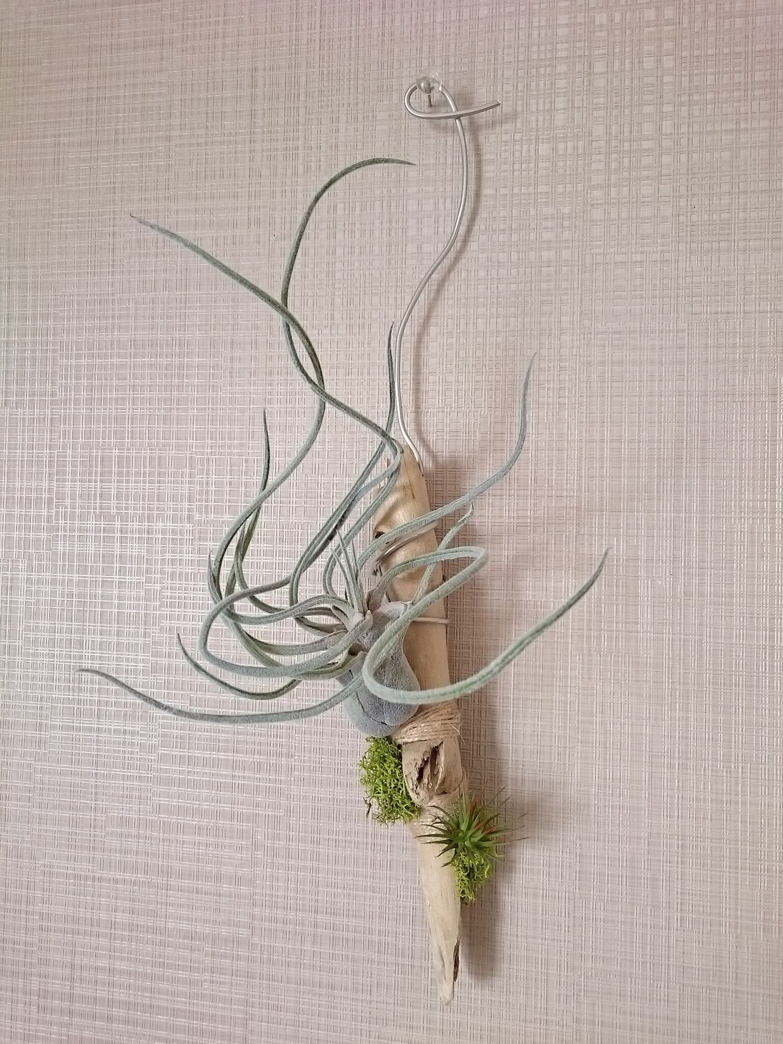 白めの流木も作品を引き立て存在感ありのインテリアです。