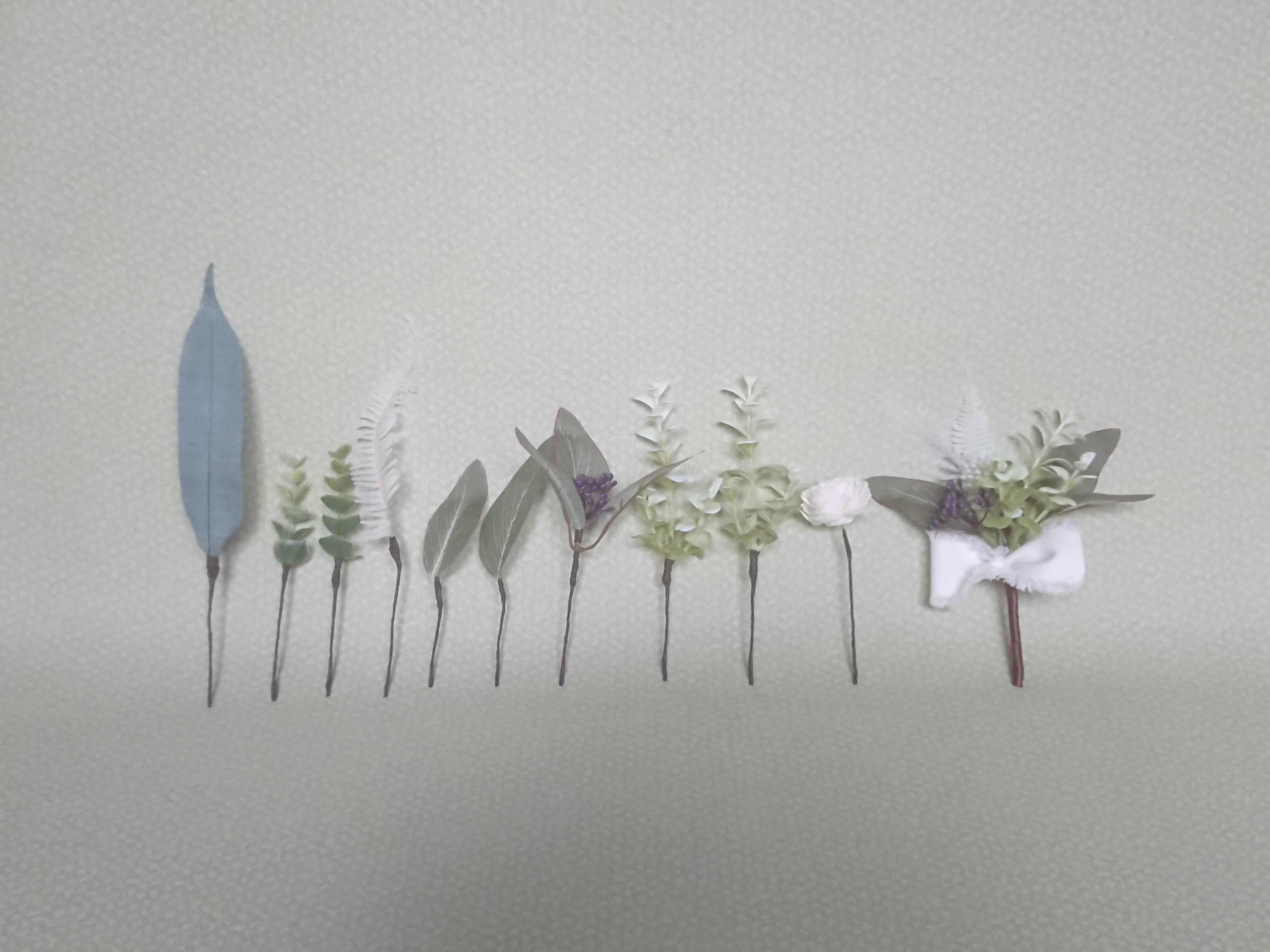 すべてアーテフィシャルフラワー(造花)や天然素材パーツでできております。